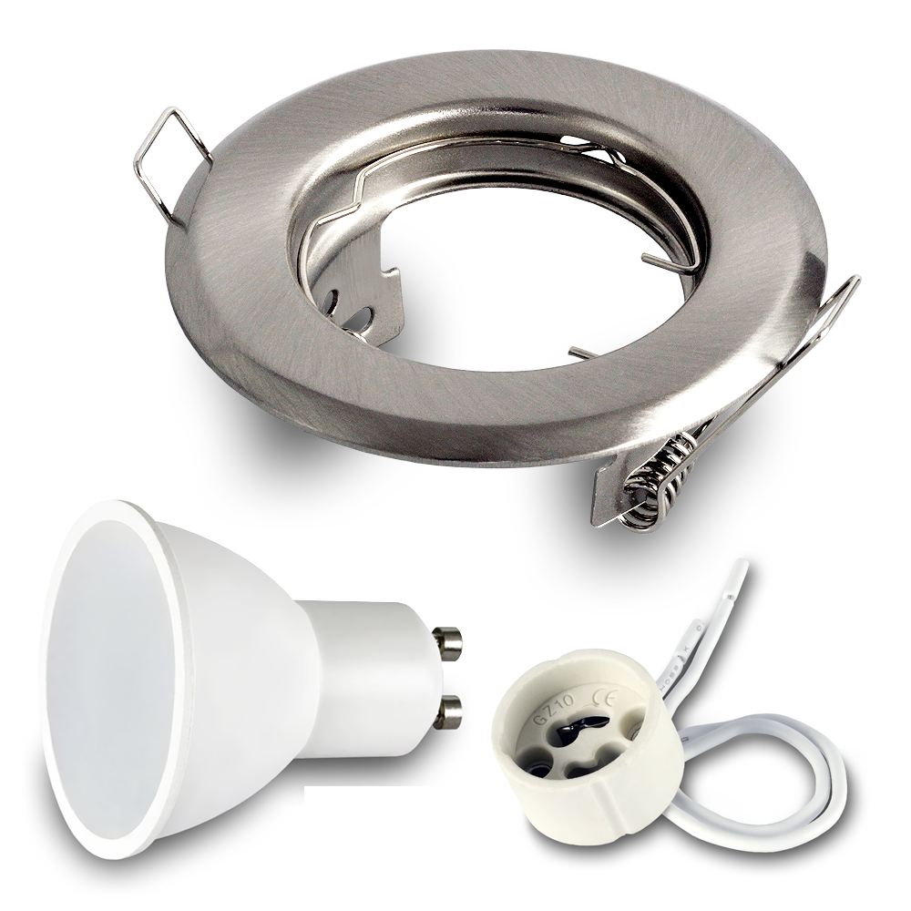 Komplet Oprawa wpuszczana stropowa RIK-15 inox + GU10 7W 3000K
