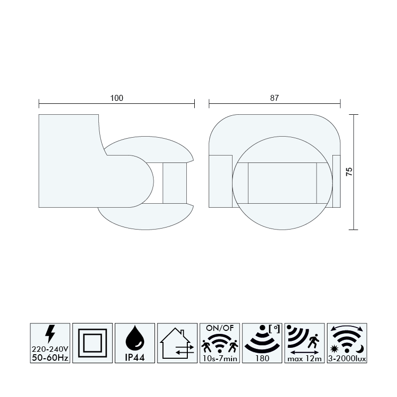 | Zakres regulacji czułości światła | 3 lux - 2000 lux |