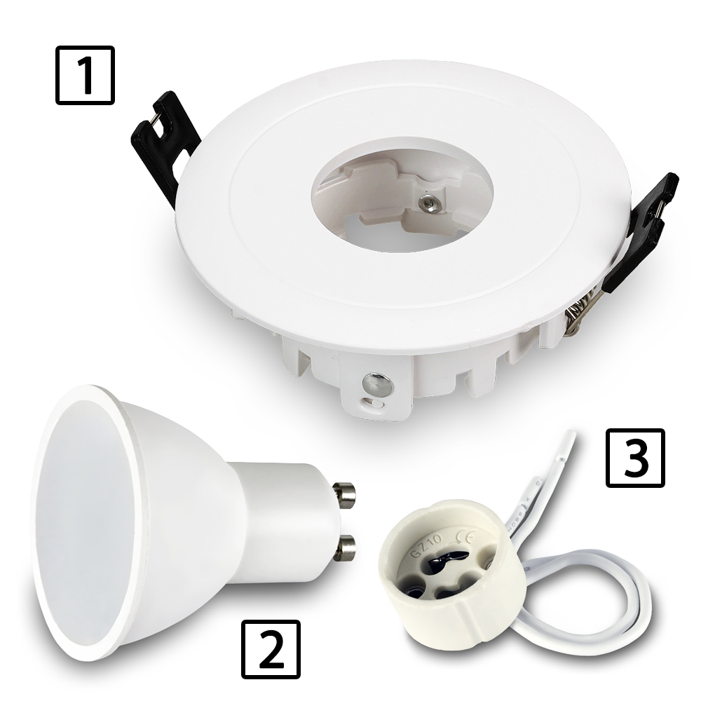 WERSJA 230V : Aby uzyskać kompletny zestaw oświetleniowy należy do oprawy dokupić żarówkę GU10 + przyłącze do żarówki GU10.