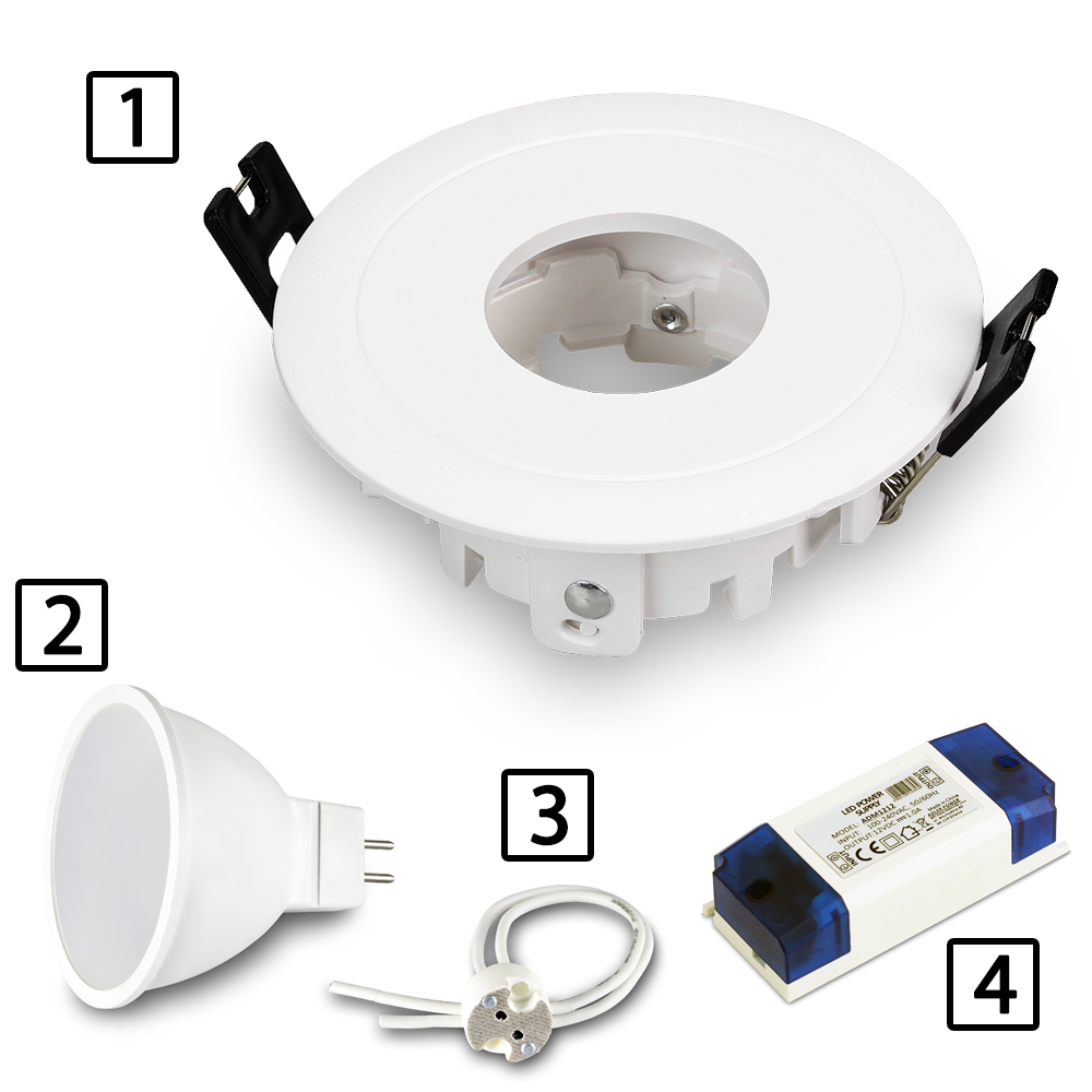WERSJA 12V: Aby uzyskać kompletny zestaw oświetleniowy należy do oprawy dokupić żarówkę Gu5,3 + oprawkę do żarówki Gu5,3 + zasilacz LED.