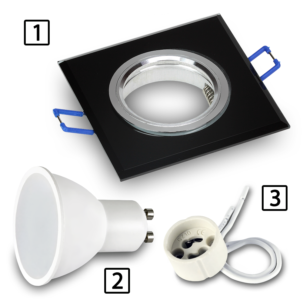 - Aby oprawa była dostosowana do napięcia 230V wystarczy dokupić oprawkę- przyłącze do żarówki GU10