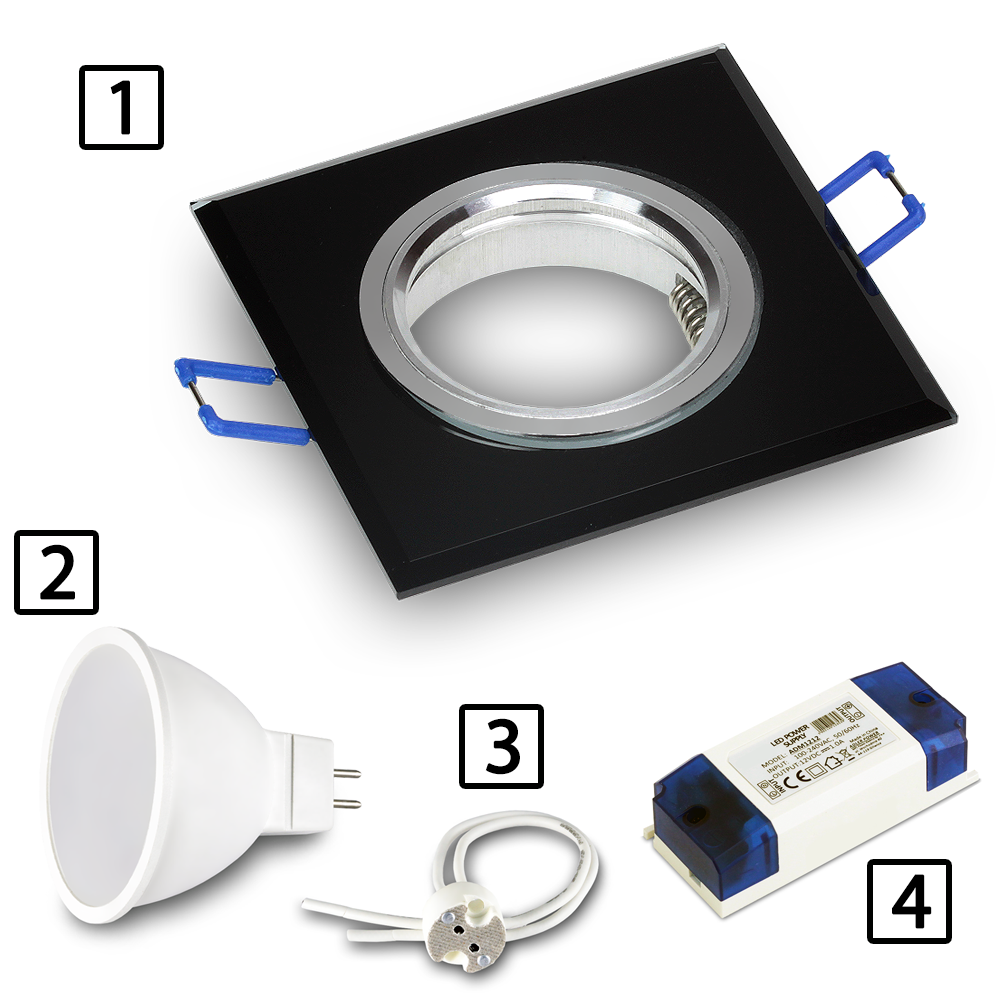 - Aby oprawa była dostosowana do napięcia 12V wystarczy dokupić oprawkę- przyłącze do żarówki GU5,3