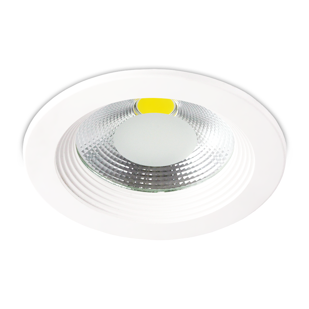 W oprawie zastosowane są energooszczędne, wysokiej klasy diody COB LED, znacznie efektywniejsze niż diody SMD. Moc lampy 10W pozwala uzyskać światło porównywalne do klasycznej żarówki o mocy 85W. Lampa posiada przeźroczysty klosz z matowym polem po środku maskującym diodę COB.