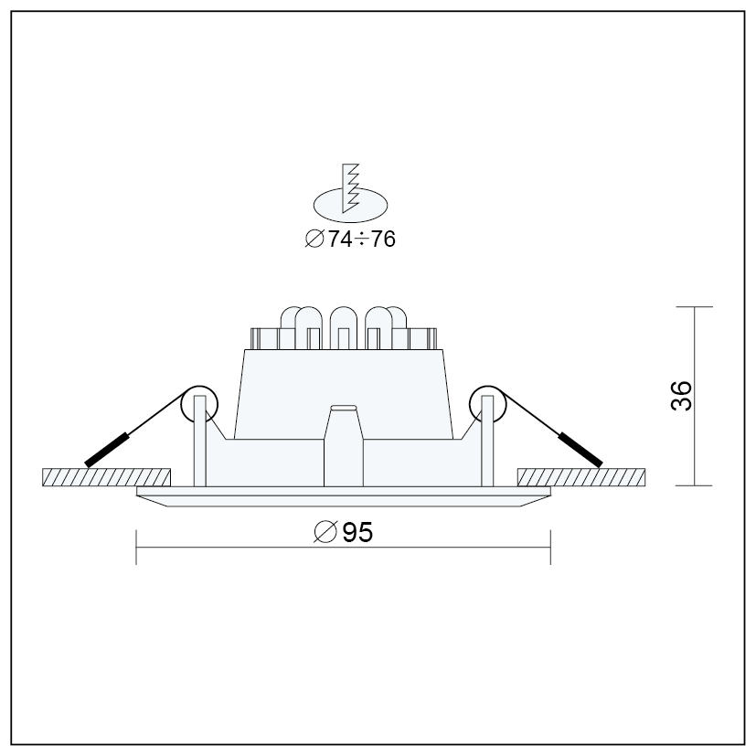 W oprawie zastosowane są energooszczędne, wysokiej klasy diody COB LED, znacznie efektywniejsze niż diody SMD. Moc lampy 5W pozwala uzyskać światło porównywalne do klasycznej żarówki o mocy 45W. Lampa posiada przeźroczysty klosz z matowym polem po środku maskującym diodę COB.