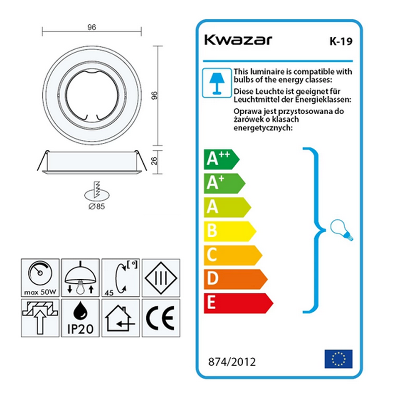 - Aby oprawa była dostosowana do napięcia 230V wystarczy dokupić oprawkę- przyłącze do żarówki GU10