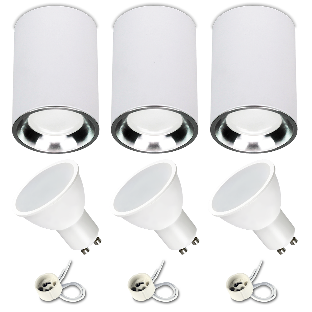 Zestaw 3x Spot sufitowy tuba VAX biały srebrny + żarówka GU10 7W 3000K