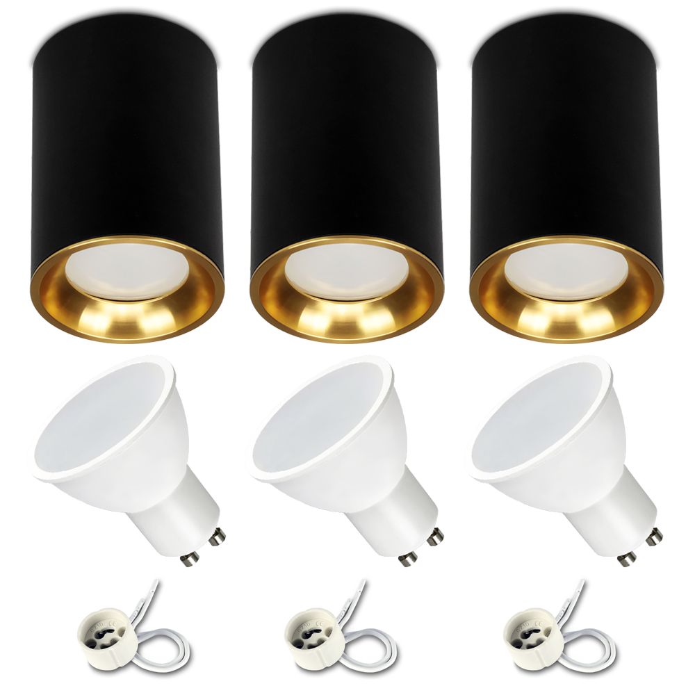 Zestaw 3x Spot sufitowy tuba VAX czarny złoty + żarówka GU10 7W 3000K