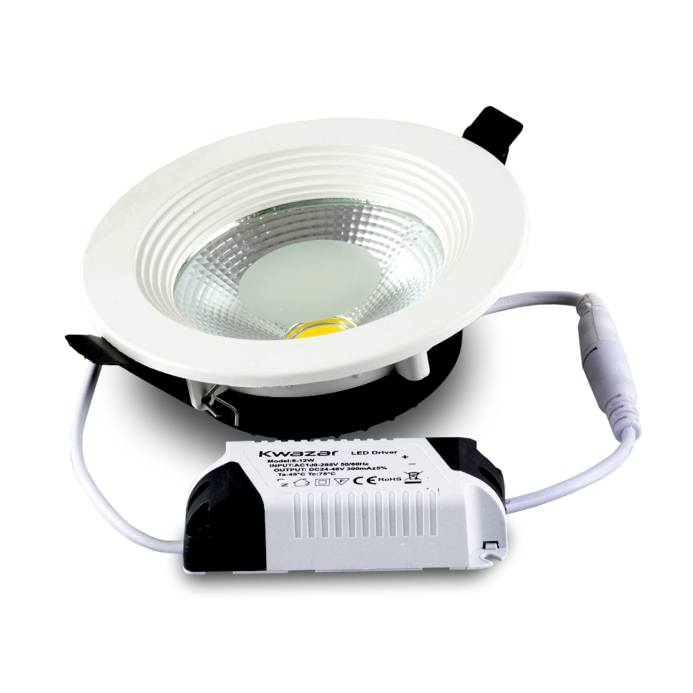 W oprawie zastosowane są energooszczędne, wysokiej klasy diody COB LED, znacznie efektywniejsze niż diody SMD. Moc lampy 10W pozwala uzyskać światło porównywalne do klasycznej żarówki o mocy 85W. Lampa posiada przeźroczysty klosz z matowym polem po środku maskującym diodę COB.